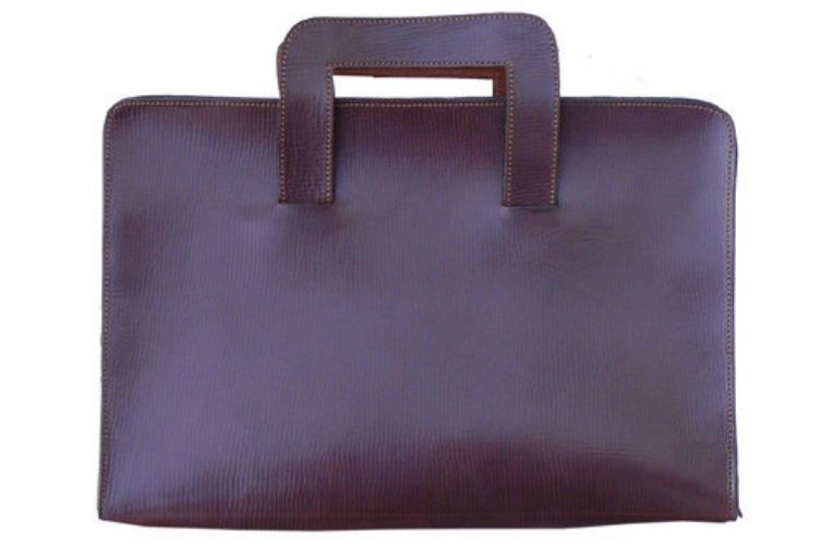 Cartera portadocumentos con asas y departamentos interiores color marrón chocolate.