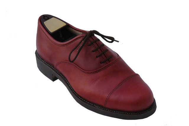 Zapato modelo inglés piel color burdeos con puntera piso suela